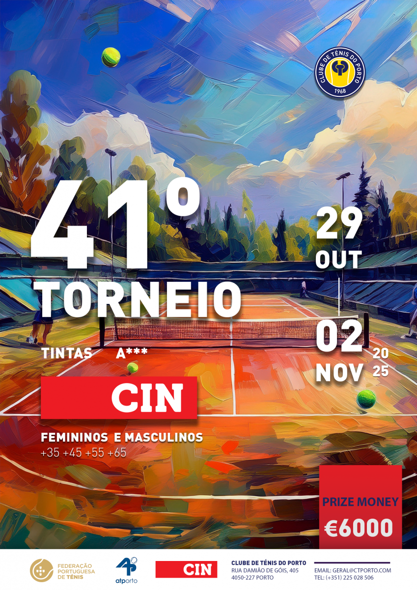 O Clube de Ténis do Porto prepara-se para receber mais uma edição de um dos seus eventos mais emblemáticos — o 41.º Torneio Tintas CIN, que decorrerá entre os dias 29 de outubro e 2 de novembro de 2025.