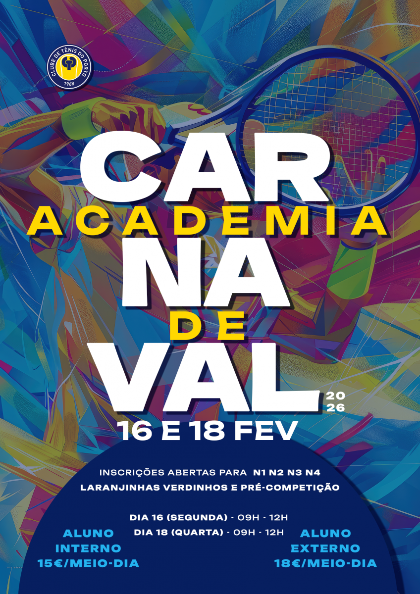 O Carnaval está a chegar — e com ele, uma pausa nas atividades escolares. Para assinalar esta época de forma especial, a Escola de Ténis tem o prazer de lançar a sua 1ª Academia de Carnaval, uma novidade pensada para proporcionar aos nossos alunos dias ativos, saudáveis e cheios de boa disposição.